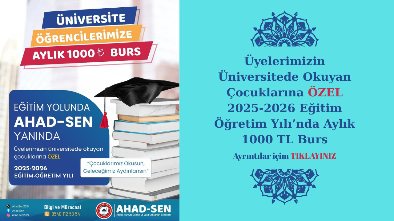 • Burs yalnızca AHAD SEN üyelerimizin üniversitede okuyan çocuklarına verilecektir.